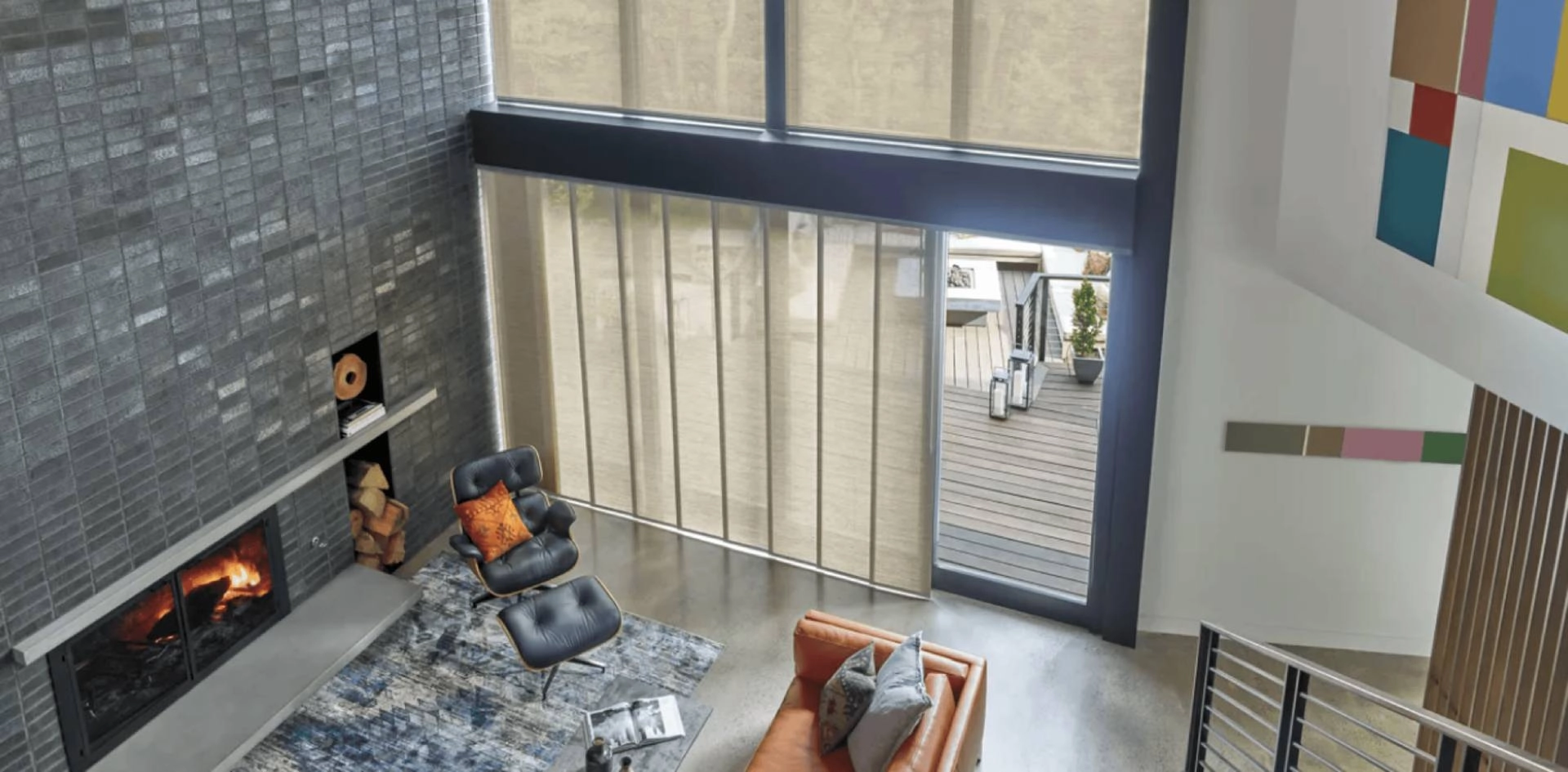 - Skyline® Panel-Track Blinds: If you prefer a minimalist, architectural look, these wide fabric panels are a perfect fit. They offer a sleek, contemporary backdrop and stack tightly to the side to maximize your view of the coast or city skyline.